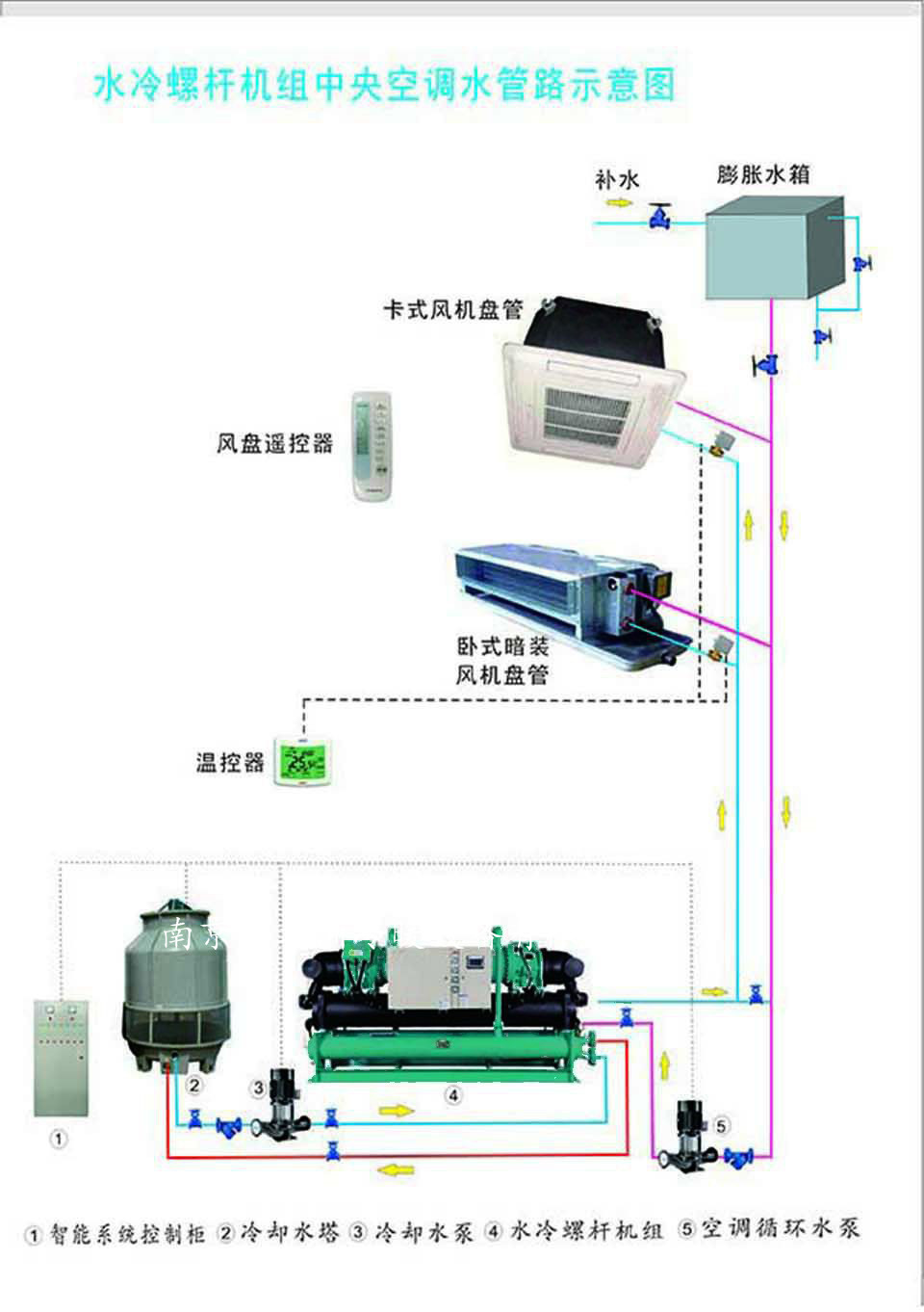 水(shuǐ)機(jī)工(gōng)作(zuò)原理(lǐ):水(shuǐ)系統空(kōng)調由室外(≤wài)主機(jī)和(hé)室內(nèi)末端裝置組成,通(tōng)過室外(wài)主機(jī)提供空($kōng)調冷(lěng)/熱(rè)水(shuǐ),由水(shuǐ)管系統輸送到(dào)室內(nèi)末端裝置,水(shuǐ)與空(kōng)氣在室內(nè&i)末端處進行(xíng)熱(rè)交換來(lái)消除房(fáng)間(jiān)冷(lěng)/熱(rè)負荷。是(shì)一(yī)種集σ中産生(shēng)冷(lěng)/熱(rè)量,但(dàn)分(fēn)散處理(lǐ)各房(fáng)間(jiān)負荷的(de)空(kōng)調系統型式↓。