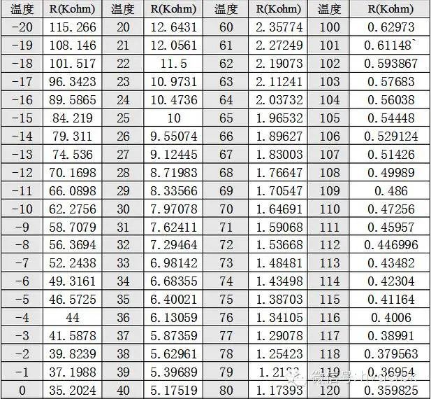 《空(kōng)調管溫傳感器(qì)(10K)溫度-電(diàn)阻對(duì)照(zhào)表》 單位: 溫度®℃/電(diàn)阻K