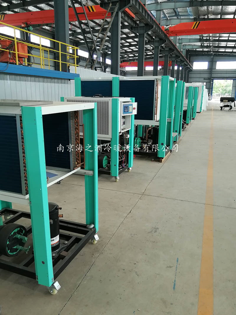 箱型冷(lěng)水(shuǐ)機(jī)組适宜安裝在防雨(yǔ)棚內(nèi)或與外(wài)界環境有(yǒu)×良好(hǎo)通(tōng)風(fēng)條件(jiàn)的(de)室內(nèi),在排風(fēng)方向空(kōng)間(πjiān)不(bù)得(de)低(dī)于2.0m使冷(lěng)水(shuǐ)機(jī)在制(zhì)冷(lěng)工(gōng)作(zuò)中由冷(lěng)卻風(fēng)扇排出的(de)熱(★rè)風(fēng)散發到(dào)外(wài)界環境中,在冷(lěng)水(shuǐ)機(jī)側面冷(lěng)凝器(qì)進風(fēng)方向應有(yǒu)1.5—2米空(kōng)間(jiān),保證冷(lěng)水(shuǐ)機(jī)正常工(gōng)作(zuò)環境。機(jī)組要(yào)求安置在不(bù)低(dī)于20cm 的(de)水(shuǐ)平堅實的(de)混凝土(tǔ)基礎上(shàng),對(duì)于10HP以上(shàng)機(jī)組加裝減震裝置,用(yòng)地(dì)腳螺栓緊固;機(jī)組周圍應留一(yī)定的(de)工(gōng)作(zuò)空(kōng)間(jiān),以方÷便操作(zuò)、檢查和(hé)維護。